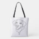 Minimalistische Tragetasche mit einer sauberen, durchgehenden Ein-Linien-Darstellung eines charmanten Hundes, die ein modernes und elegantes Design schafft, das perfekt für den täglichen Gebrauch, Hunde-Liebhaber und stilvolles Einkaufen oder Verschenken ist.
