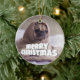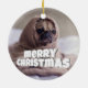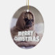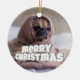 Der kleine Hund spürt den kalten Weihnachtsschmuck