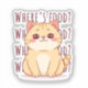 Dickliche Ingwerkatze, die hungrig aussieht, mit dem Text „Wo ist Essen?“.