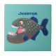 Hungrige lustige Piranha Cartoon Illustration Fliese