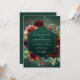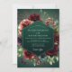 This design evokes the dramatic romance of a classical oil painting. A rich arrangement of garnet peonies and crimson roses unfurls against a deep hunter green background. Touches of dark navy blossoms and verdant foliage add depth and opulence, creating a truly artistic and moody atmosphere for your elegant affair.