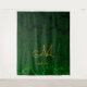 Hunter Green Gold Monogram Wedding Foto Booth Wandteppich