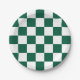 Retro Schachbrettmuster (7x7 Gitter) mit den Farben Ihrer Wahl. Jäger grünen und weißen Karo auf einer runden Papierplatte. Klassisches Muster mit Ihren Lieblingsfarben, um Ihrem Stil oder Ihrer Wohngestaltung zu entsprechen.