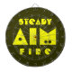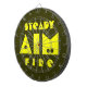Das sonnige Dartboard für Pub Darts in der Männhöhle. Camouflage hellbraune Farbtöne mit hellolivem Grün für die Worte. Ein dunkler olivgrüner Hintergrund. STEADY AIM FIRE in großem Text mit Löchern in den Buchstaben. Sie können Text- oder Hintergrundfarben ändern, aber diese Farben werden Ihr Auge auffangen. Von ihr Wolf Medicine