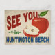 Eine bezaubernde Postkarte des Huntington Beach California mit einer hübschen roten Apfel, zusammen mit einem lustigen Text im Retro-Stil, in dem steht: "See you in Huntington Beach"