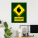 Hurrikan Crossing - Gelbe und schwarze Straßenschilder-Design mit dunkelgrünem Hintergrund.