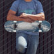 Hurrikan Dorian über dem Atlantischen Ozean. Skateboard