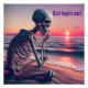 Hurt bekommt Hurt - Sonnenuntergang und das Meer, Skelett sitzend gekreuzt auf dem Sand des Meeres.