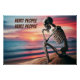 Ein schönes Meer bei Sonnenuntergang mit einem Skelett, das am Strand in Gedanken sitzt. HURT Menschen verletzen MENSCHEN.