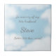 Dieses irre lustige Design hat eine Szene himmlischen blauen Himmels, träumen Wolken, funkelnden Sternen und die Worte "In Erinnerung an meinen verstorbenen Mann [Name einfügen] Besser spät als nie!" Ideal für diejenigen, die lange auf einen Partner gewartet haben.