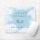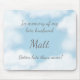 Dieses irre lustige Mousepad hat eine Szene himmlischen blauen Himmels, träumen Wolken, funkelnden Sternen und die Worte "In Erinnerung an meinen verstorbenen Mann [Name einfügen] Lieber spät als nie!" Ideal für diejenigen, die lange auf einen Partner gewartet haben.