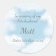 Dieser irre lustige Aufkleber hat eine Szene himmlischen blauen Himmels, träumen Wolken, funkelnden Sternen und die Worte "In Erinnerung an meinen verstorbenen Mann [Name einfügen] Lieber spät als nie!" Ideal für diejenigen, die lange auf einen Partner gewartet haben.