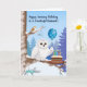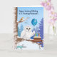 This charming January birthday card features a striking Snowy Owl holding a snowflake balloon beside a rich chocolate birthday cake, set within a cozy winter scene. In the background, a small Barn Owl looks on from the snowy landscape, adding a gentle touch of nature and seasonal charm. Perfect for a husband who appreciates wildlife, peaceful winter moments, and unique artwork, this nature-inspired birthday card brings warmth, character, and winter wonder to his special day.