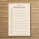Personalisieren Sie dieses Honey Do List klebrige Notizblock, indem Sie die Namensvorlage in den Namen Ihres Ehemannes ändern oder einfach nur "Hubby". Es verfügt über eine braune Checkliste in texturiertem Beige mit Checkboxen, um die Aufgaben oder lustige oder lustige Aufgaben für Ihren Hubby aufzulisten. Außerdem können Sie den Listentyp anpassen, indem Sie die "Honey Do List" in "To Do List", "Fix-It List" oder "Things To Do" ändern.