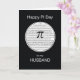 Wird es Ihrem Mann nicht gefallen, diese irrational Karte zu bekommen? Pi Tag ist ein wenig bekannt Feiertag, außer für diejenigen, die es zu schätzen wissen! Ein weißer Kreis mit Rand, hat zufällige Ziffern im Inneren mit einem schwarzen Hintergrund überall. Ein Pi-Symbol wird in der Mitte des Kreises und oben auf den Zahlen platziert. Diese Karte wird perfekt am Pi Day mit Raffinesse gegeben.