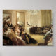 Junge Geigerin an einer großen Ansammlung in Viktorianischem Herrenhaus bereitet sich darauf vor, ihre Geige mit Klavierbegleitung zu spielen. Eine Gruppe von Menschen in formalem Kleid umgibt sie. Viktorianische Kunstmalerei von James Tissot. Titel "Hush"