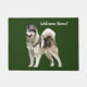 Door Mat mit Husky Hund zeichnend und Text - Welcome Zuhause= Leicht zu ändern Hintergrundfarbe und fügen Sie Ihren eigenen Text hinzu.