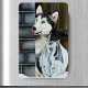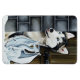 Huskischer Hund und junger weißer Drache verließ die Winterburg, um ein Abenteuer zu machen.