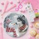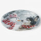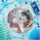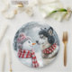 Ein Husky und ein Schneemann stehen inmitten einer schneebedeckten Landschaft