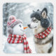 Husky Hund mit Snowman Quadratischer Aufkleber