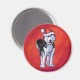 Husky in Weihnachtsmannmütze auf Rot Magnet