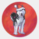 Husky in Weihnachtsmannmütze auf Rot Runder Aufkleber