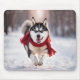 Husky läuft mit rotem Skarf Mousepad
