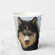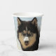 Diese Papiertassen haben einen niedlichen Husky auf ihnen.