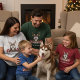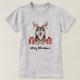 "This striking illustration features a powerful portrait of a Siberian Husky with its characteristic thick coat and intelligent, mesmerizing eyes. The dog is given a whimsical holiday touch with reindeer antlers adorned with small golden ornaments. Two beautifully wrapped Christmas presents with red ribbons sit prominently on either side. This high-quality graphic is ideal for personalized holiday gifts for Husky owners, winter apparel, Christmas cards, ornaments, or any product celebrating this majestic working breed."