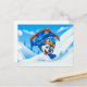 Husky Spinning on Skis on a Snowy Slope Postkarte
