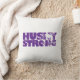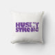 Dieses Akzent Kissen wird mit einem Husky Strong Druck gezeigt. Die Farben sind lila und weiß. Passen Sie dieses Objekt an oder kaufen Sie, wie es ist. Lizenzierte Printwerbung