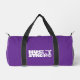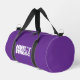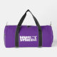 Dieser kleine, feine Duffelbeutel ist in einer lila Farbe mit schwarzem Akzent dargestellt. Wird mit einem Husky Strong Print gezeigt. Passen Sie dieses Objekt an oder kaufen Sie es wie gezeigt. Lizenzierte Printwerbung
