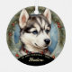Eine süße Husky Welpe Pose für seine ersten Weihnachten. Name, Jahr und Foto sind leicht personalisiert. Haben Sie kein Foto von dem neuen Husky Ihres Geliebten? Keine Sorge, beide Seiten dieses Ornaments sind bereits mit Bildern zum Geschenken vorbereitet.