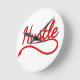 Das Wort "hustle" in rot mit Fallschatten in schwarz. Originelles Design.