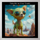 Dieses Bild zeigt eine andere Weltanschauung, die einem Hund ähnelt, mit einem ausgeprägt Alien-Aussehen. Es steht stolz auf einer roten, rötlichen Felsformation, Set gegen eine surreale, sci-fi-Landschaft aus zerklüfteten Gipfeln und einem fernen Horizont. Die Haut der Kreatur ist ein lebendiges Grün mit komplizierten Bio Mustern, was ihr eine Pflanze-ähnliche Textur verleiht. Sein auffälligstes Merkmal sind die riesigen, faszinierenden Augen, die die Umgebung reflektieren und sie als Portale in eine andere Dimension darstellen.