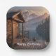 Die Teller der Geburtstagsparty verfügen über eine Kabine auf einem See. Ideal für alle, die eine Hütte oder Lieben besitzen, die auf Reisen sind.
