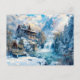Hütte am Wasserfall im Winter Illustrati Postkarte