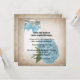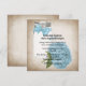 Hübsche quadratische Hochzeitseinladung in einem schicken Hütte-Stil, mit einem antiken Hintergrund. Schöne Grafik eines Maurerkirsches, mit einem ländlich blauen Bogen, mit einem ländlich blauen Hydrangea Blüte, vorne. Personalisieren Sie den schwarzen Text für Ihren besonderen Tag. Die passenden Hochzeitsprodukte sind erhältlich.
