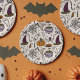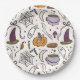 Die perfekte süße Ergänzung zu einem Halloween-Party, die Hütte Kern Halloween gemusterten Papier Teller. Mit handgezeichnet Illustrationen klassischer Halloween-Ikonen wie Kürbis, Hexen, Geister und Süßigkeiten! Originelle Kunst und Design von Annie Montgomery Design.