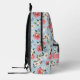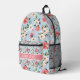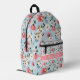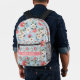 Dieser wunderschöne Rucksack mit Gartenmöbeln in Rosa, Blau, Creme und Grün ist in einer Blume gehalten. Personalisieren Sie den passenden rosa Streifen mit Ihrem Namen oder speziellen Text.