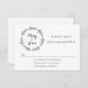 Diese Hochzeitskarte erinnert an einen Garten in der Hütte und verfügt über einen grünen Kranz in Aquarelltönen, der mit lila und grünen Blätter geschmückt ist. In der Mitte sind die Namen der Braut und des Bräutigams elegant dargestellt. Es ist die perfekte Wahl für diejenigen, die sich eine naturlich inspirierte Hochzeit mit einer Touch von Eleganz vorstellen.