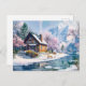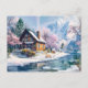 Hütte im Frühling mit Blüten Postkarte