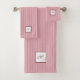 Hütte Pink Strip Rose Spitzen-Script Monogramm Badhandtuch Set