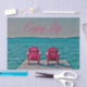 Hütte Adirondack Stühle. Rustikales handgefertigtes Papiertaschentuch. Ideal für diejenigen, die das Leben genießen und sich entspannen. Sommerlager Seehaus Strandszene. Trendy, schicke, moderne, rosa, aquamarine, türkisfarbene Farben. Suchen Sie in meiner Ladensammlung nach passenden Artikeln. Bildrecht Marg Seregelyi Fotografie.