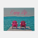 Adirondack Stühle auf einer Holzdocktür Matte. Ideal für diejenigen, die das Leben genießen und sich an der Hütte entspannen möchten. Sommerlager Seehaus Strandszene. Genießen Sie Life Zitate und Phrasen. Modernes, schicke, modernes, rustikales Zuhause-Dekor. Rosa, aquamarin, türkisfarben. Suchen Sie nach passenden Artikeln in meiner Shop-Sammlung. Bildrecht Marg Seregelyi Fotografie.