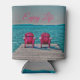 Adirondack Stühle auf einem Holzsteg Bier kann Kühler. Ideal für diejenigen, die das Leben genießen und sich an der Hütte entspannen möchten. Sommerlager Seehaus Strandszene. Trendy, chic, modern, rustikal, Satz. Rosa, aquamarin, türkisfarben. Suchen Sie nach passenden Artikeln in meiner Shop-Sammlung. Bildrecht Marg Seregelyi Fotografie.