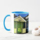 Hütten und blauer Himmel englisches Foto am Meer Tasse