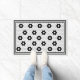 Dieses niedliche schwarz-weiße Imitat mit einem grauen, grünen Rahmen ist perfekt für jede Zuhause. Die klaren Linien, die einfachen Farben und das Vintage Muster sind zeitlos und vielseitig. Auf einer gummibasierten Matte, die dauerhaft und leicht zu reinigen ist. Ideal für Zuhause und zeitgenössische.
