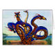 Eine Schlange mit Kopf, deren Kopf wieder wachsen würde, wenn sie abgestürzt würde. Die Hydra des Mythos war ein Drache, der schließlich von Herkules getötet wurde. Dieser hier ist blau und goldgelb mit einem gepunkteten Bauch. Wir sehen, wie es auf der Suche nach Ärger am Strand auftaucht. Fertig in gemischten Medien mit einer meist blauen Palette.