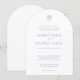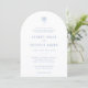 HYDRANGEA, wedding invitation. Template features, trendy blue typography with hydrangea floral stem illustration.